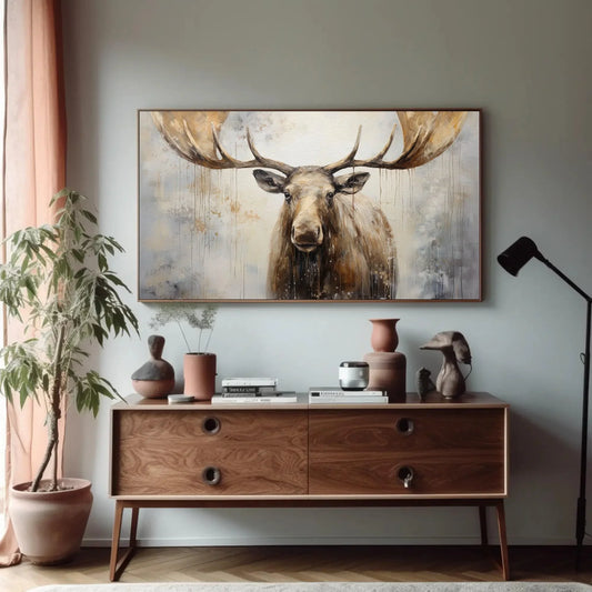 Abstract Moose Wall Art - Large Antlers Framed Canvas Print