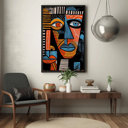 Cubist Eye Faces Canvas Art - Abstract Geometric Wall Decor in Bold Colors