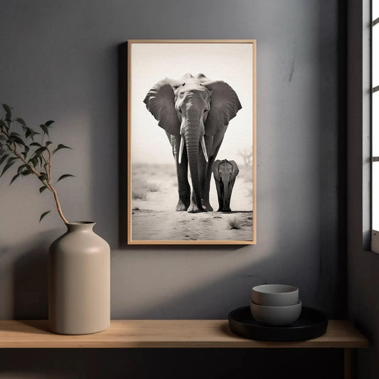 African Elephant Canvas Print - Black and White Desert Decor for Man Cave and Game Room