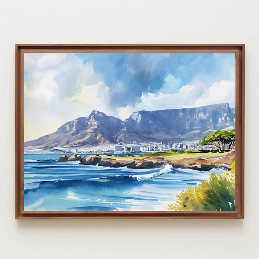 Cape Town Watercolor Print - Table Mountain Canvas Wall Art South Africa Decor