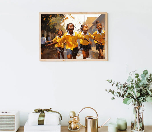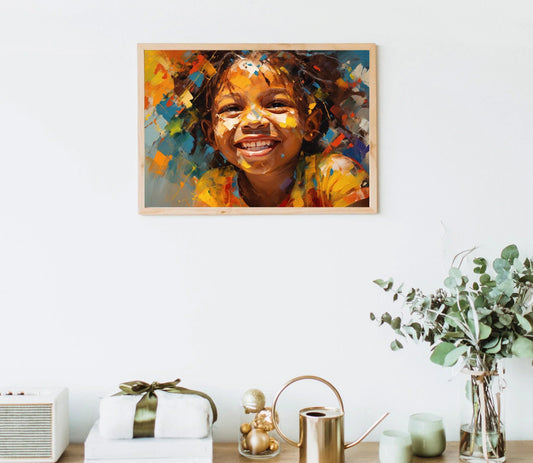 Vibrant African Kid Art Print - Happy Black Canvas Home Decor Gift