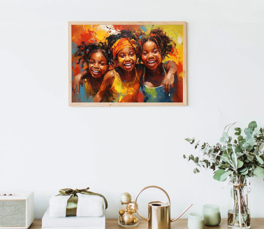 African Sisters Colorful Wall Art - Black Art Home Decor