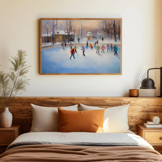 Ice Skating Oil Painting - Scenic Winter Christmas Wall Art Decor