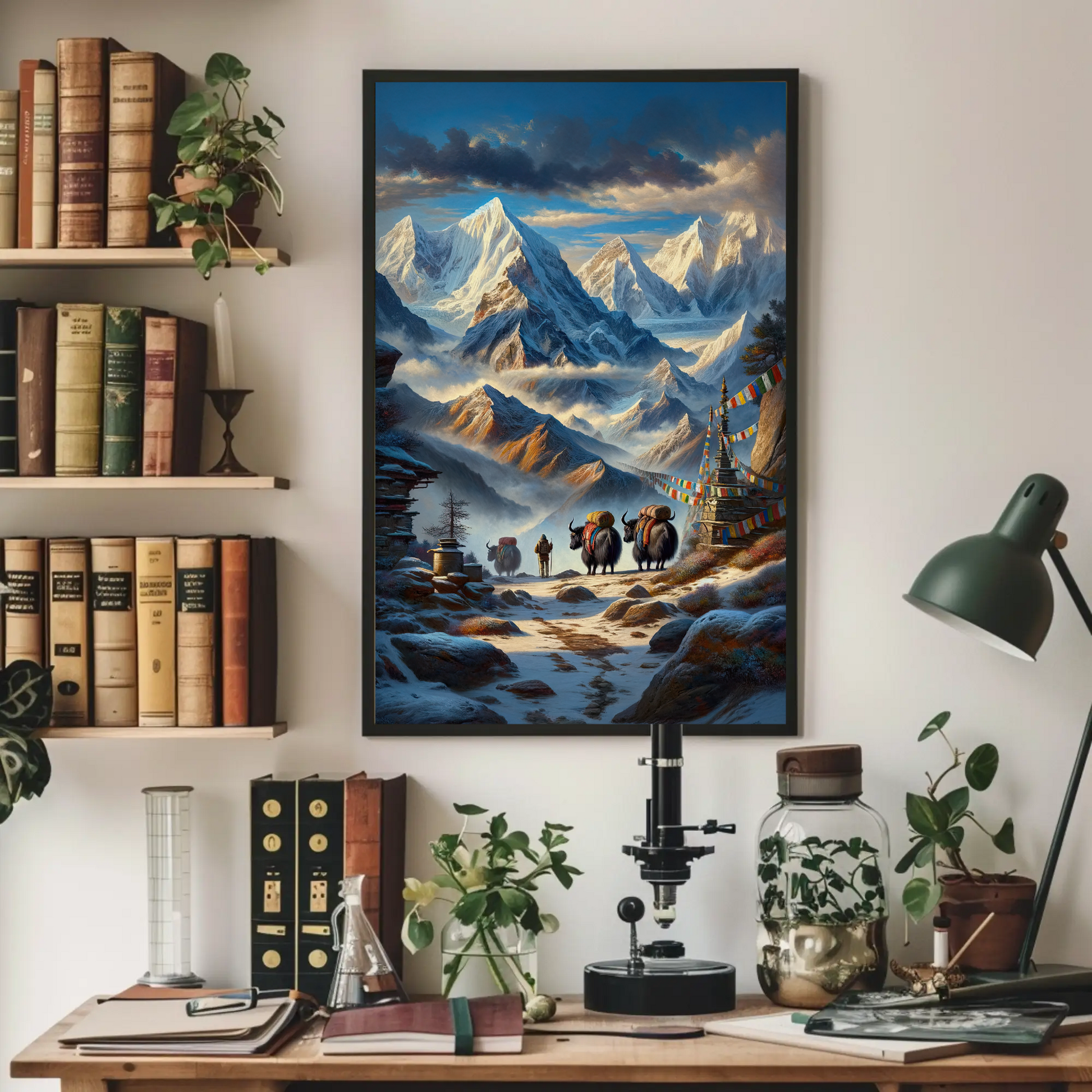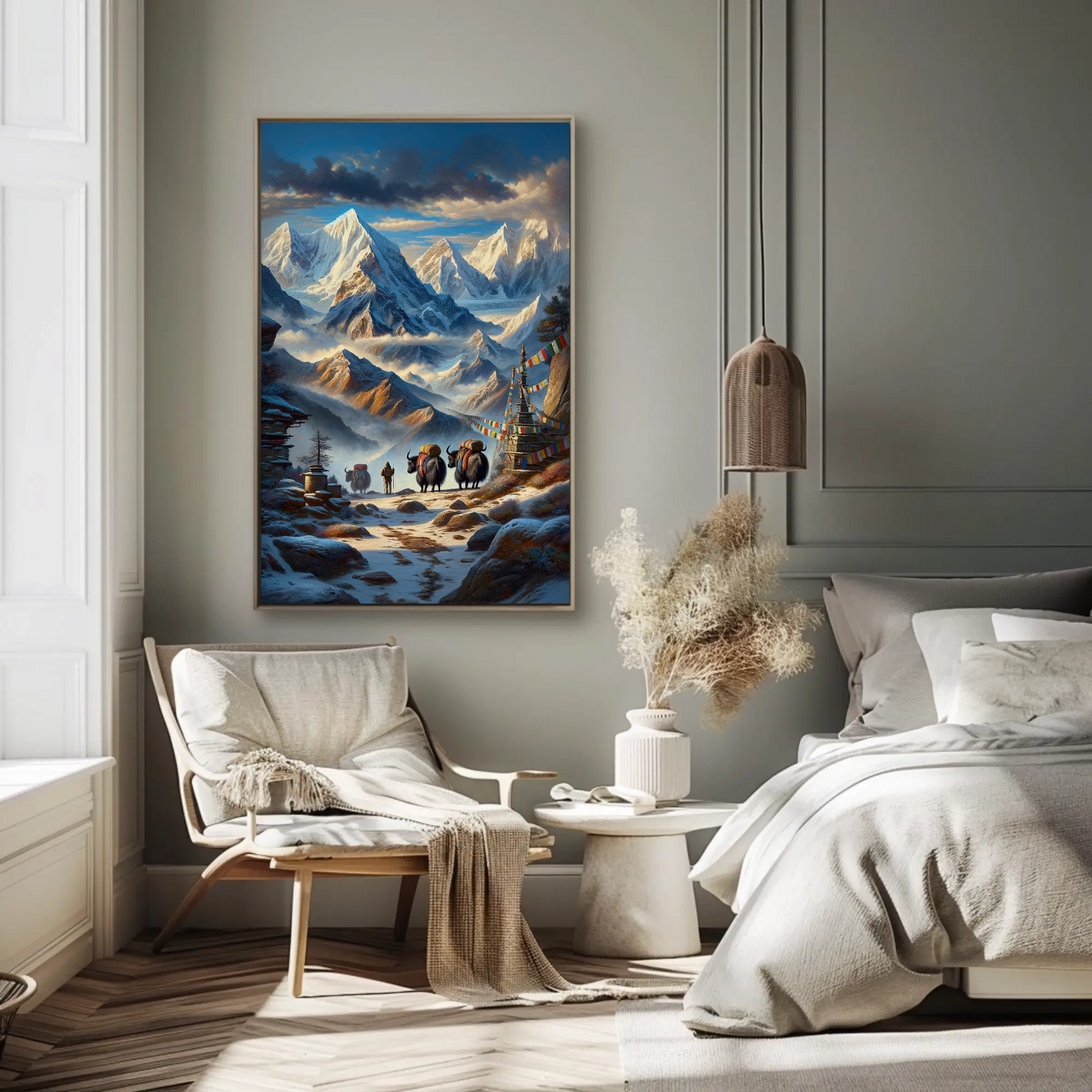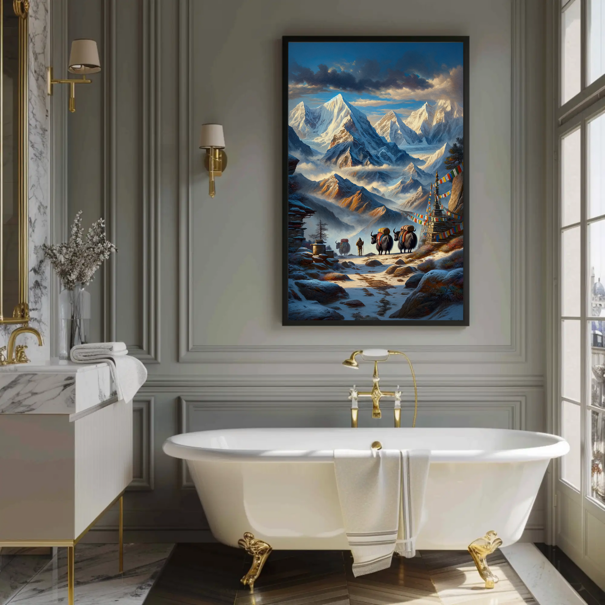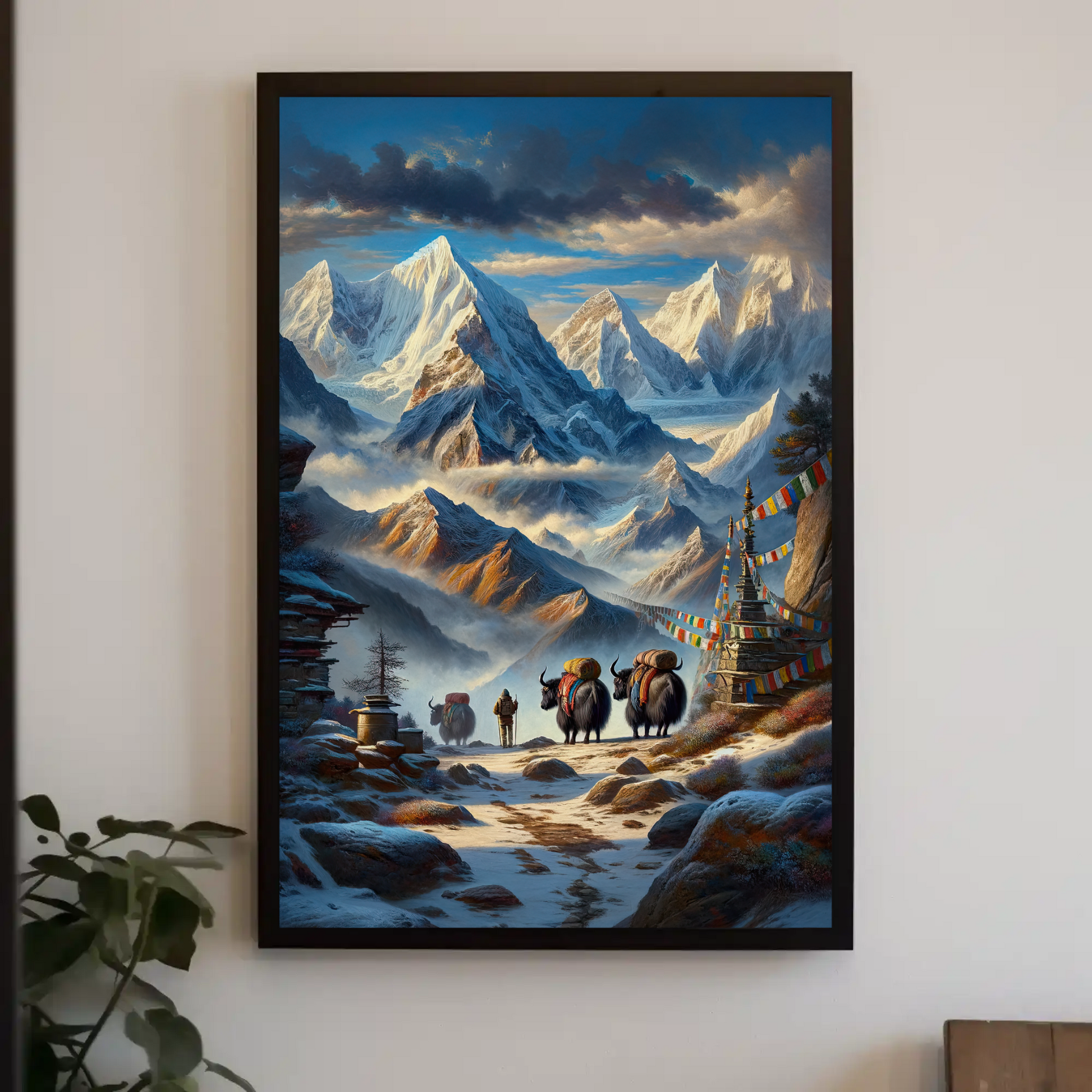 Explore our captivating Himalayan Yaks Painting, a signed canvas art print from India that enhances your living room decor. This exquisite artwork beautifully illustrates the majestic yaks in their natural habitat, bringing a unique and cultural touch to your home. Crafted with high-quality materials, the print showcases vibrant colors that are sure to catch the eye and maintain their appeal over time. This piece not only serves as a striking focal point but also enriches any art collection, making it an ideal choice for those who appreciate the beauty of nature and traditional artistry.