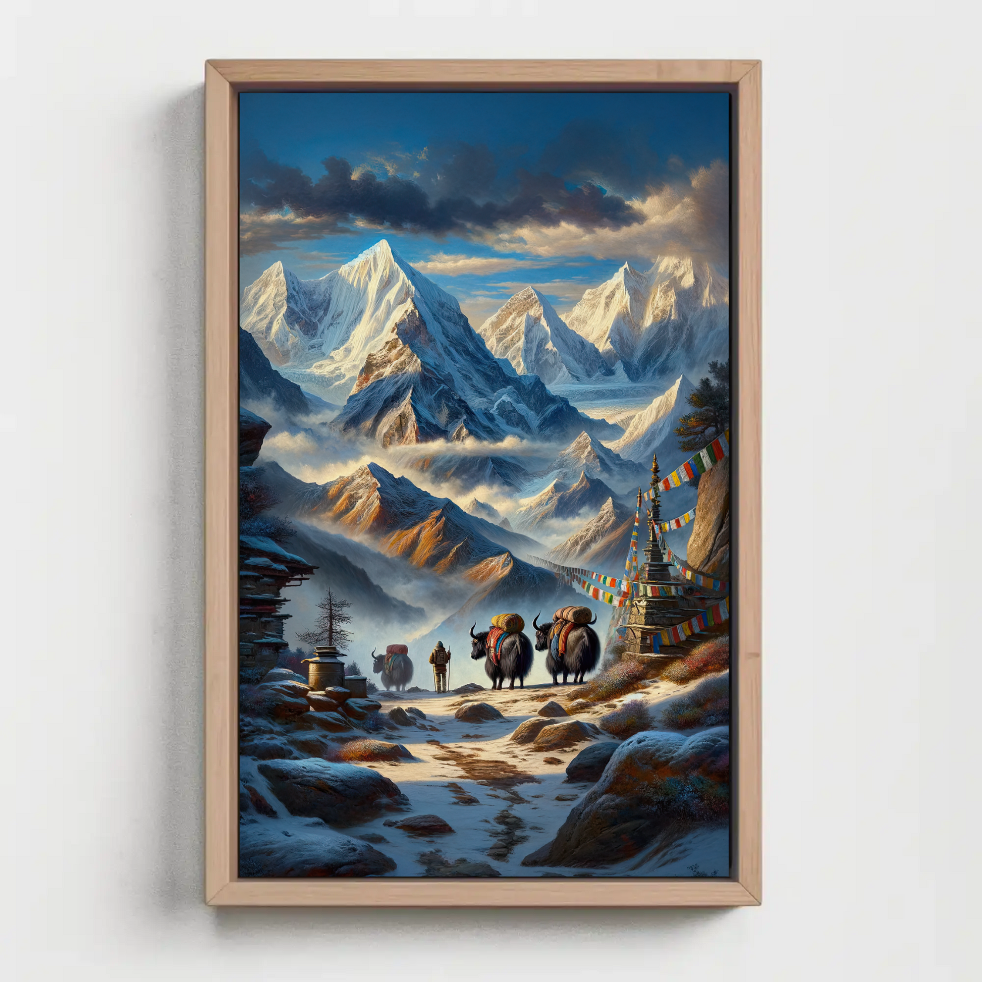 Himalayan Yaks Painting - Signed Indian Canvas Art Print for Living Room Decor